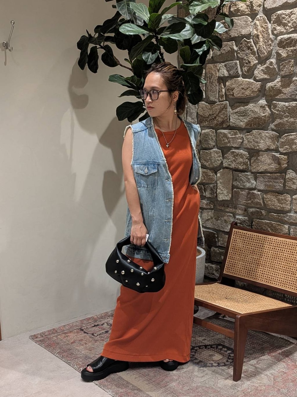 大人っぽリブワンピース✾ ピタピタではない適度なタイトさで、カジュアルもキレイも使い回せる優秀なアイテムです デニムとも合う〜♫でも実はちょっとポケットに手を入れてズルして丈を持ち上げております笑。裾がギリギ地面に到着してしまい🥲一応ソールは高いサンダルなのですが私の体が足りず笑 透け感もなく夏過ぎない素材で、羽織る素材や小物を変えたら季節も幅広く活用できそう♡