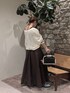 個性派な刺繍カーディガンはシルエットが推しポイント! メッシュ素材は通勤性もあって柔らかく着心地◎ドルマンスリーブで体型カバー👍️袖や裾のラインデザインはほんのりトラッドっぽくて可愛い♡ スカートはミニドットのついたブラウン。フレアがたっぷりですが綿素材で気取りすぎないテイストです ウエスト折ってません〜♫ バッグをボストンにして、個性もありつつクラシカルな女性的雰囲気でまとめてみました!