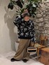 もちもちなニットは着心地が気持ちいい♡フラワーのジャガード編みが細かく繊細なデザインもとっても可愛いですよね✾ パンツはスウェード素材。巻きスカートのようなデザインがあって個性的でモード感がありかっこよい印象です✨私にはちょい長めですがウエストは折れないので、安定の厚底UGG様に助けて頂いてます笑 特にレイヤードなどせず、カラーも特別明るくはないですが、それぞれのデザインに存在感あるので着るだけでオシャレになれますね👍️