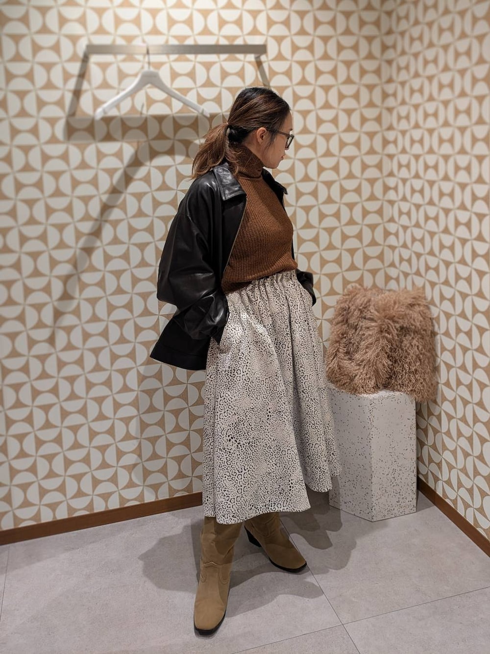 ✽✽✽ EF ✽✽✽ エフmen's、本皮羊レザー着てみました🐏柔らかくて光沢感がかっこよい✨✨✨女性でもオーバサイズで着こなしアリです◎ 味のある自分だけのものに育てていく楽しみと、やっぱり本皮って耐久性が推せます!本皮の良さを堪能してずっと着てほしいアイテムです👍️ レオパードミディ丈のスカートを合わせるモード感、フワフワもけもけバッグは全体のハードさを和らげてくれるのでコーデに取り入れました♫