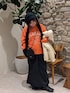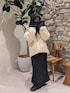 ニット帽とマフラーが一体化🧣マフラーの端はポケットみたいなってて手も防寒。1つで3役の多機能✨屋内ならパーカーみたいな雰囲気で肩に掛けとけば邪魔にもならないですね◎ モンスターコートは今年はショート丈!私が着るとお尻隠れるくらい。裾のサイドを絞れたり、フードは収納して襟が立って、撥水加工まであってカンペキ✌ スカートも裏起毛がめっちゃあったかくて、さらにタイツやブーツをプラスで冷たい風をブロックしちゃいましょう❄ストレッチもあるから、カジュアル派ママさんの日常におすすめです👍️ 着込める、動ける、日常の防寒対策アイテムコーデ!