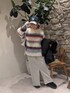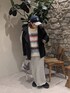 ふわふわニットのボーダー配色がおしゃれ!オーバーサイズも好みです♡もう1色チャコールも可愛いのでぜひ見てみてください🔍️ スカートはSサイズ。148の私はそれでもちょっと大きめですが、広がりすぎないスッキリシルエット。 前スリットが可愛いのでぜひブーツや靴下を見せるコーデをしてみてください♫ オーバーサイズのニットなら、アウターもオーバーサイズで羽織りやすく👍️昨年も人気だったウーリーライダースはレザーよりも柔らかい雰囲気で、しっかりしてるのにとっても軽いのでオススメです◎