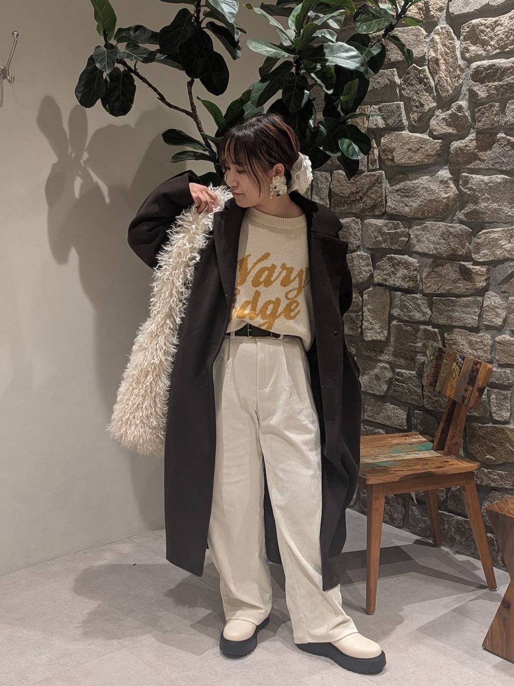 大人&シンプル、気取らないテイストでずっと着られるカッコ良ロングコート✨1枚あればお仕事や大事な日も重宝!流行りに左右されないコートです👍️ とはいえ、トレンドブラウンに惹かれます笑。合わせやすい3色ですから、より迷いますね〜🥹 結構厚みのあるゆったりニットを着て羽織りましたが着膨れなく羽織れました🧥 チビにはこちらのパンツは大きめ。全体的にゆったりだったので、ベルトでしっかりハイキープ&厚底ブーツなら丈バランスも✌ もちもちニットの優しいジャガード編みの冬らしさ、冬生地パンツのホワイトは温かみあって最強コンビ♡ ブラウン✖ホワイトで冬の大人女子コーデ完成❄