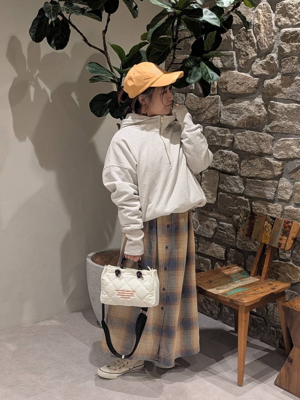 ロング丈のチェックワンピースは、内側がサラッとした快適な着心地で気温に適応しているところがオススメポイント🌸チビですが、裾にドロストコードがついたスウェットと合わせてみたら、少し丈感が上がりソールの高くないコンバースとの相性も◎ スウェットを脱いでもギリギリ引きずらないです👍羽織りとしても活躍しそう!WEB限定カラーも🔍️ ハーフジップのスウェットは、しっかり閉じればハイネックのような仕様。シンプルでオーバーサイズだからレイヤードしやすい!春秋冬と着られる時期の幅が広いですね♫ 気温の変化が激しい時期に、着回しできるアイテムは重宝しますね