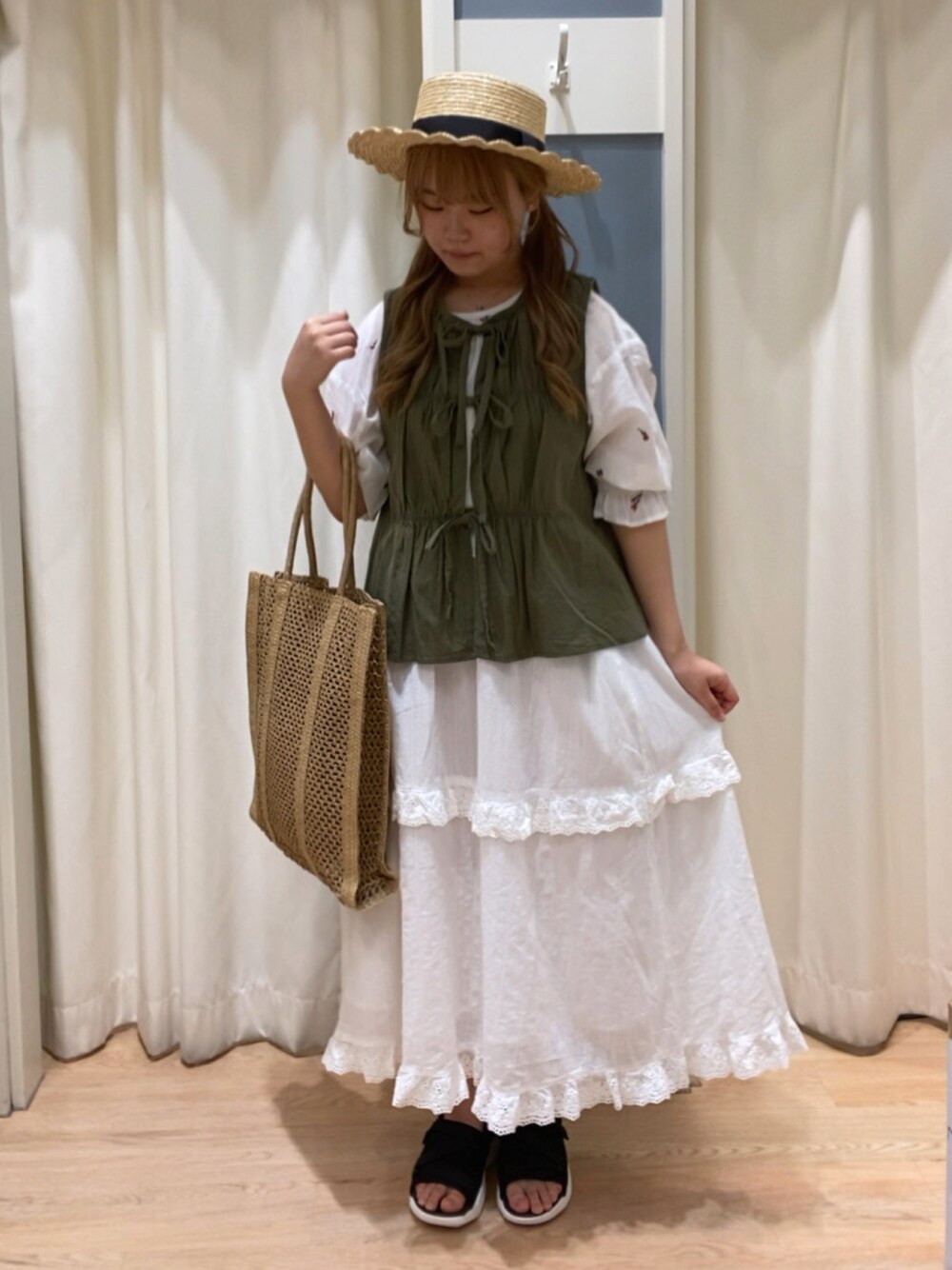 ユリのスカート「ドビーストライプスカラップレーススカート」を使ったコーディネート