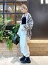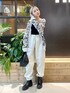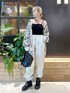 モノトーンの綺麗めトップスには スウェットパンツを合わせてカジュアルさを。 スポーティーなスウェットパンツも ホワイトを選ぶと部屋着感も少なめで ◎