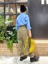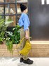 シャツとパンツのシンプルな合わせには 帽子をプラスしてアクセントに ^_^ ずるっとワイドなボトムも ロールアップでスッキリ〜 ◎