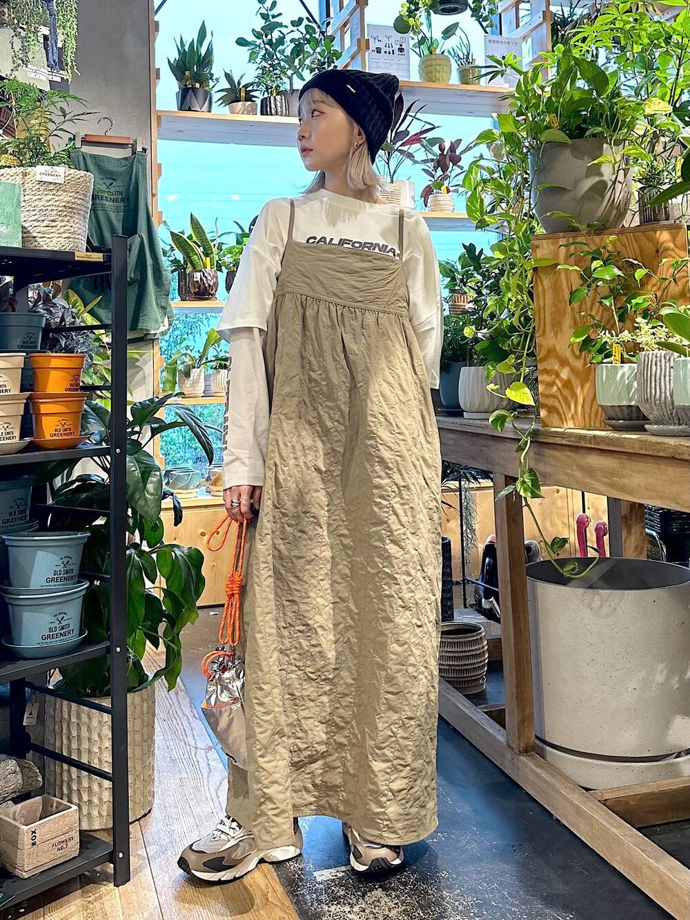 ワンピースでもキャミソールだと インナーとのレイヤードが楽しめて ◎ Tシャツのプリントもバッチリ見えて 重ね着して可愛い楽しい〜 ^_^