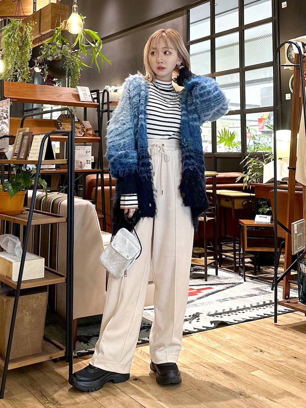 私もリアルバイしたカーディガン 💙🩵 もっけもけの素材が 存在感ありありで最高に可愛い、、!! グラデーションカラーと 実はボーダーのデザインもお洒落 ◎ 羽織るだけで コーディネートの主役になります ^_^