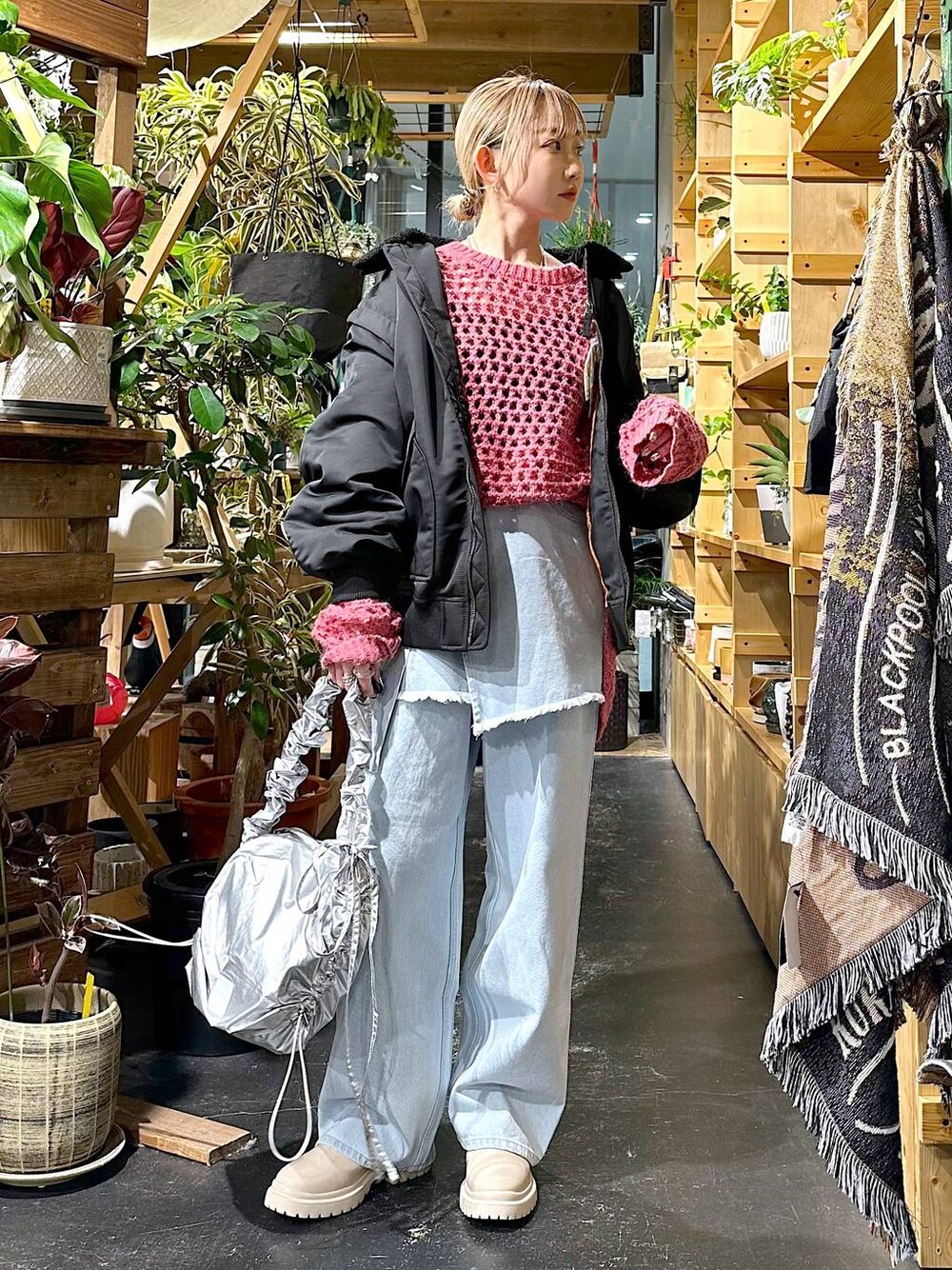 お正月のセールが落ち着けば 店頭は一気に春服に〜 🌸 ピンクカラーと薄色デニムで 春服先取りコーデです ^_^ デニムは私もリアルバイしました ◎