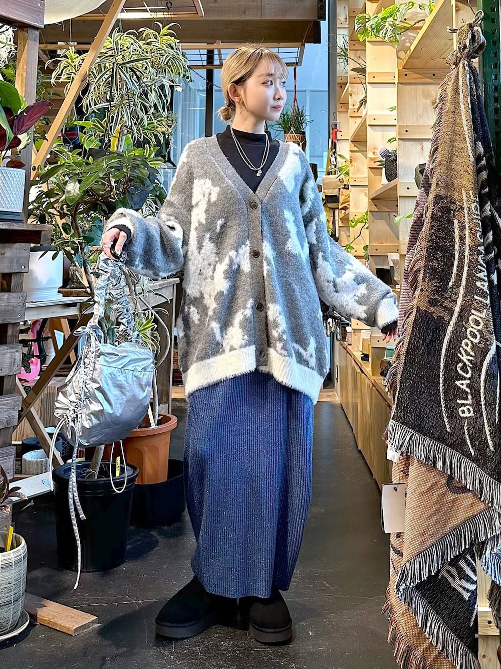 私もリアルバイしたカーディガン 💓 ゆるめなトップスは 細身のボトムと合わせてバランスを〜 ◎ 広がりの少ないスカートも 伸縮性のあるリブ素材で履き心地も最高〜 ^_^
