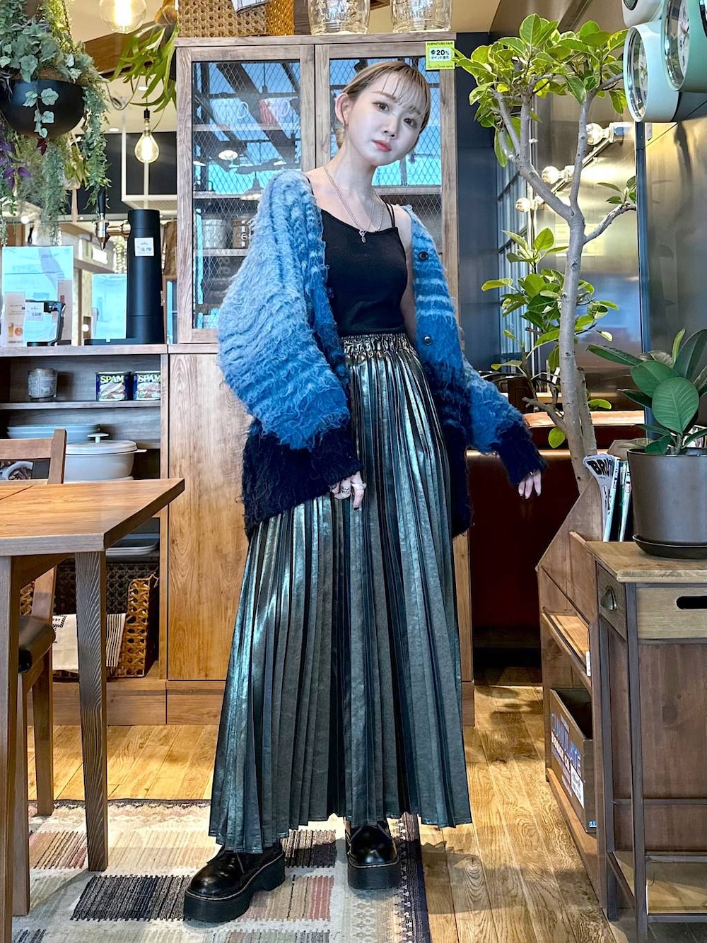 ================================== " 準備できてる?ニコカグと始める新生活 " 【告知】2024.2.23(金)〜 家具フェア開催決定! ◉ 期間 店舗 : 2024.2.23(金) 〜 2024.4.7(日) WEB : 2024.2.23(金)9:00 〜 2024.4.8(月)11:59 上記期間中に対象商品をお買い上げいただくと、 お買い上げ金額(税抜)の20%をポイントで還元 ◎ ※ポイント・クーポンご利用分を差し引いた税抜き金額に対し。 WEBストアはもちろん、 イオンモール白山店では展示家具も豊富にご用意 🛋️🪑 実際に見てお買い物できるので 是非足をお運びください ☺️✨ ================================= 今日の出勤コーデ ^_^♡ 厚手のニットカーデは キャミソールとのレイヤードでも あったかく着られるから重宝〜 ◎ メタリックのスカートと合わせて トレンド感も 🫶