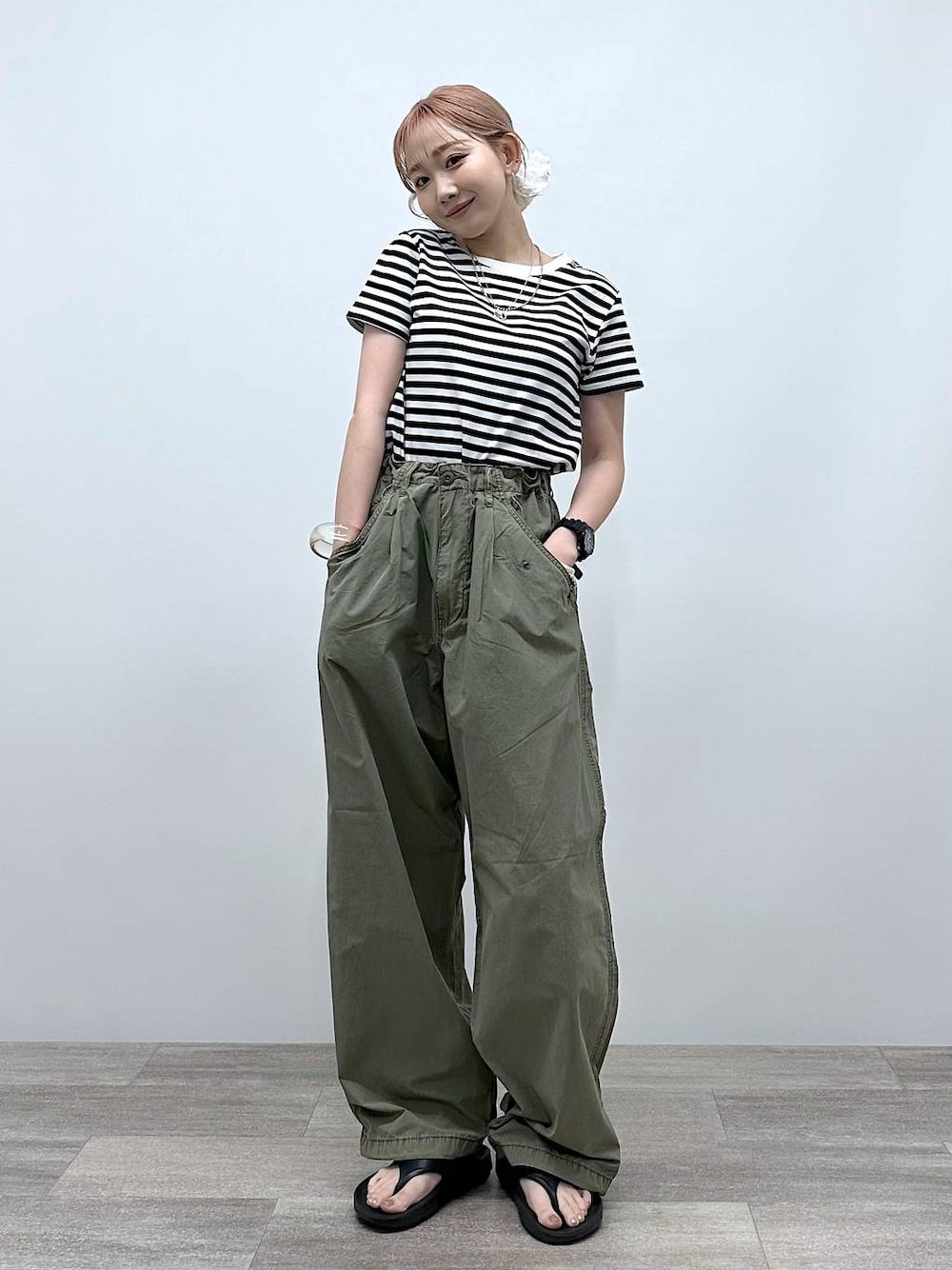リアル出勤コーデ 🐍 このくらいシンプルな格好が大好き〜!! ◉Tシャツ→Shortサイズ リアルバイしたボーダーTシャツ! 3サイズ展開で 好みに合わせて選べるのが嬉しい〜♡ Shortと言ってもおへそが見える丈ではなく 全体的にコンパクトなサイズ感◎ スッキリコーデがお好きな方に^_^ ◉パンツ→Mサイズ メンズアイテムです👦 ウエストに紐と、裾も絞れる仕様なので 女性の方もサイズ気にせず履けます◎ 流行り廃りない定番カジュアルパンツは 1本持ってると間違いなし〜^_^ Instagram ♡ ♡ ♡ 映えないリアルな私生活てんこもりなアカウントです(笑) 是非お気軽にフォローやコメントお待ちしておりますっっ :;(∩´﹏`∩);:💗💗