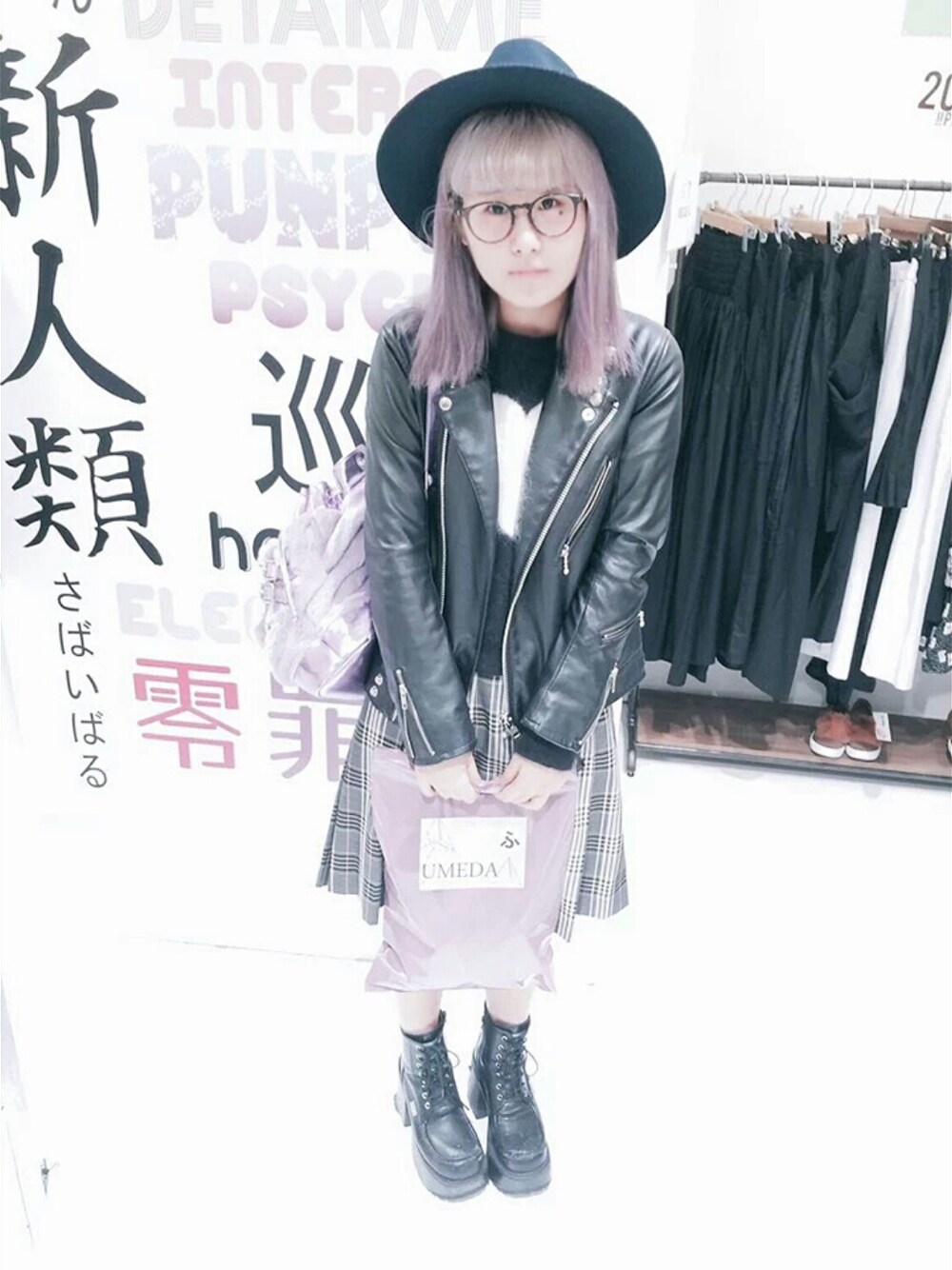 yumi のジャケット/アウター「フェイクレザーライダース3」を使ったコーディネート