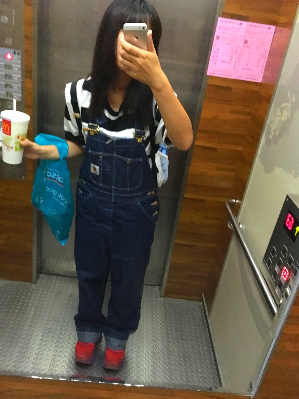 yumi のTシャツ/カットソー「PEPE BURGER BORDER TEE」を使ったコーディネート