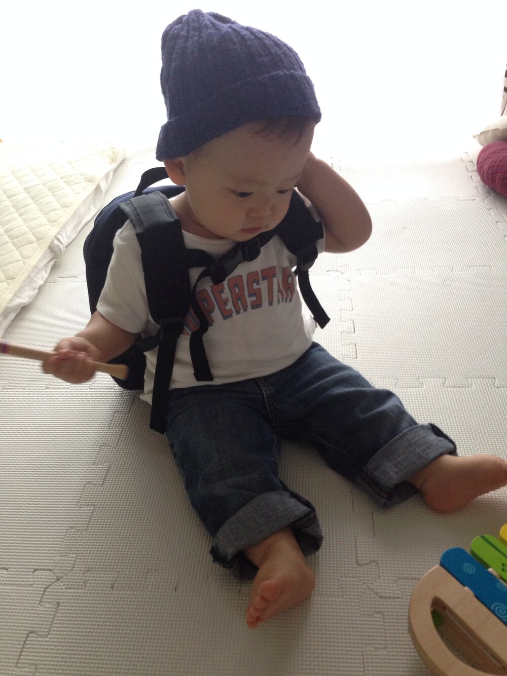 涼しくなってきたので、ニット帽かぶってみました。 けど…すぐ取ってしまって被ってくれない。。(´Д` )