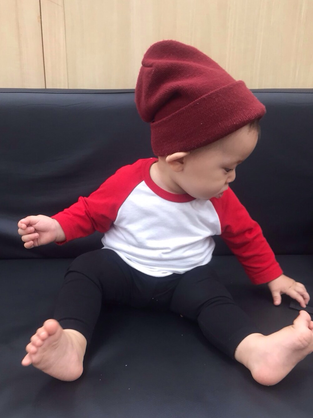 先日アメアパでお買い物中に、紺色のラグランを買いました。ってことで親子リンクで子供には色違いの赤を購入!! ちょっぴり恥ずかしいけど、リンクコーデしちゃいました♡ ソファが黒やから、パンツが色被りでわかりにくくてすいませーーん(´Д` )