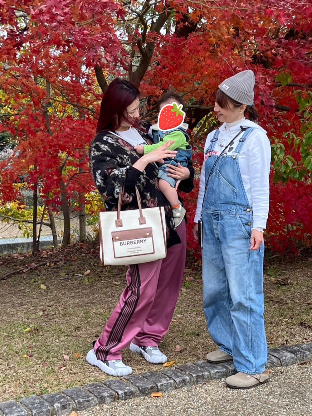 いつかのコーデ 公園散歩🚶♀️ ばあはミッキースウェット 孫はミッキーサロペでリンクコーデ🎶