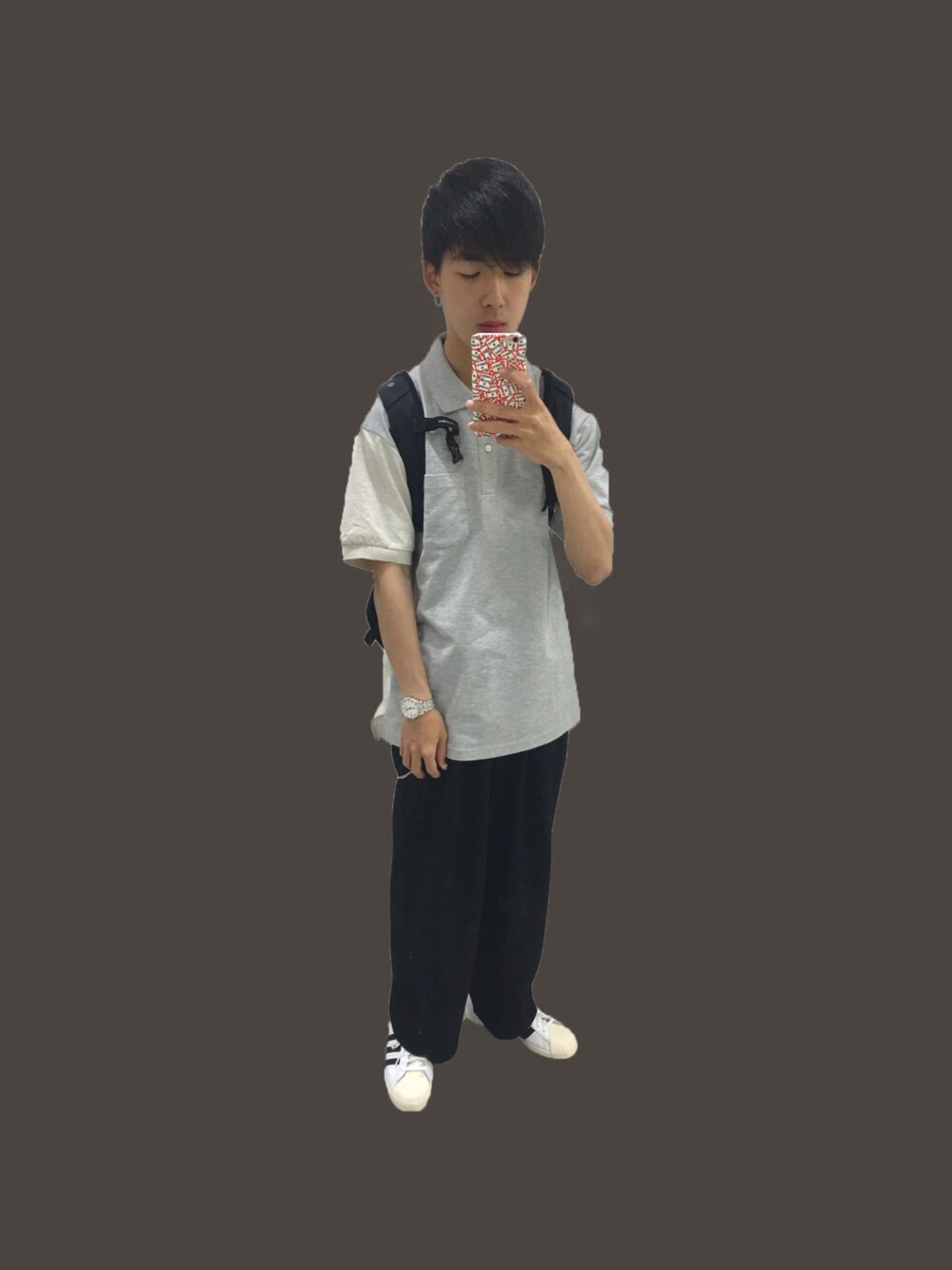 ショウのポロシャツ「ドライカノコカラーブロックポロシャツ(半袖)」を使ったコーディネート
