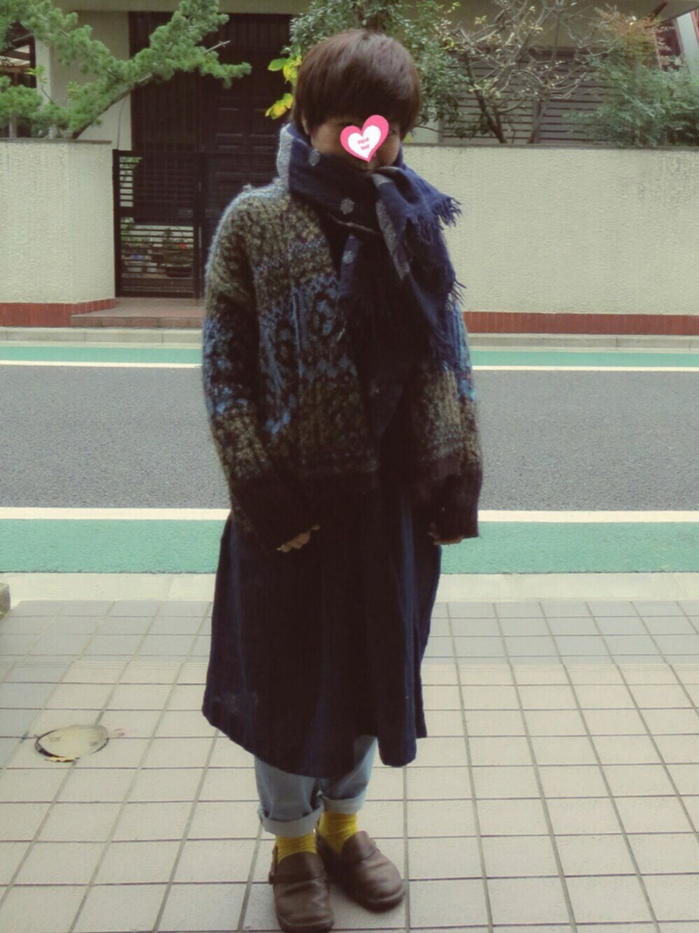 明日は初雪?! 午後寒くなってきたので ぐるぐるストールとカウチンで完全防備。 雪は好きだけど・・・ どうか積もりませんように。