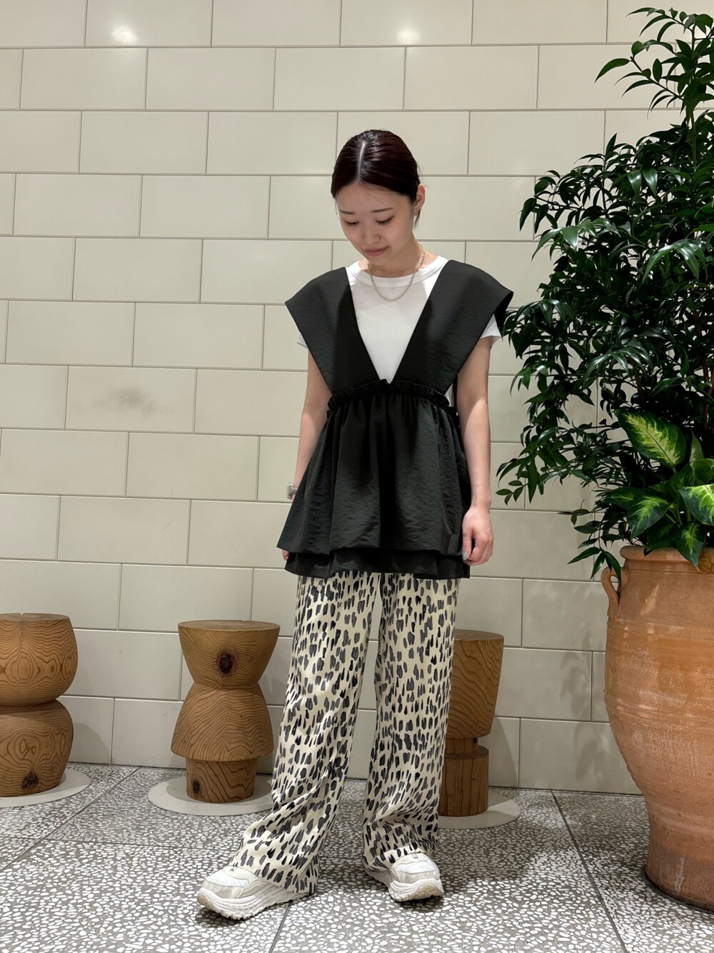 COCOA(URBAN RESEARCH 渋谷ヒカリエShinQs)のベスト「切替ギャザーベスト」を使ったコーディネート