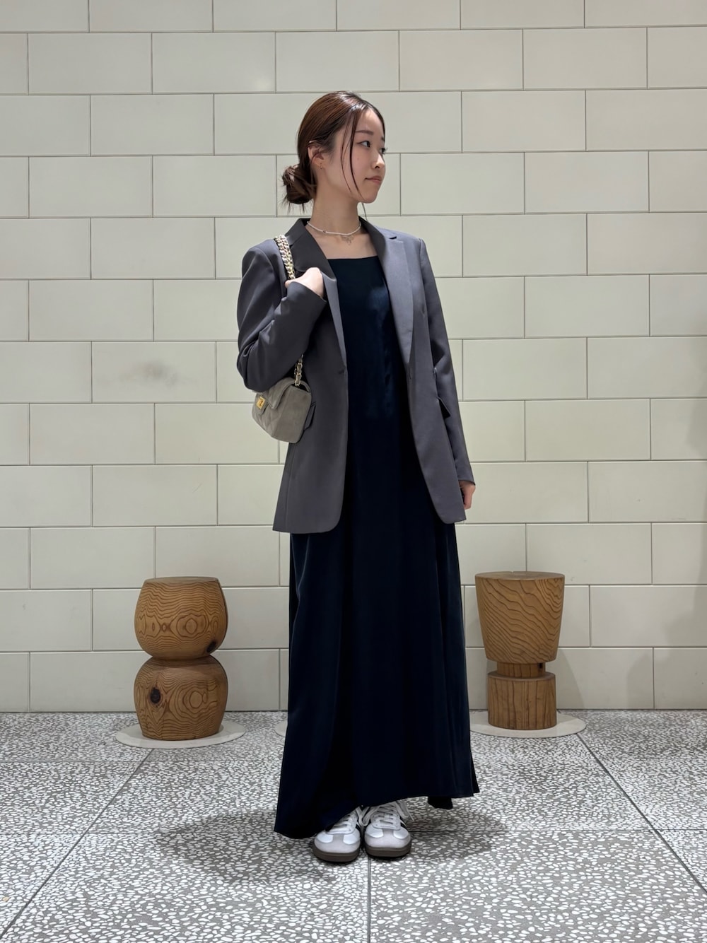 *ワンピース キュプラ混の2WAYワンピースです。テロッとした生地感とフレアな裾が動くたびに広がって可愛いです。 *アウター 軽くてサッと羽織れるフォーマルジャケットです。シワになりにくく、袖部分にはスリットチャックがありシーンに合わせて活躍してくれます。 *バック 上品な2WAYキルティングバッグです。日常使いに最適なサイズ感◎ *シューズ adidas SAMBA カジュアルにもフォーマルにも合わせやすい万能スニーカーです。 ご覧いただきありがとうございます!