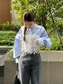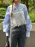 ブルーシャツメインの爽やかスタイリング *トップス ノーカラーのシャツです。サイズ感はだいぶオーバーです。襟部分にワタが入っておりぷっくりとしたデザインです。 *ビスチェ シンプルなスタアリングにひとアレンジ加えてくれます。肩紐長めです。 *パンツ 155センチで丈感ちょうど良いです。 *バック ハンドバッグでもショルダーバッグとしてもお使いいただけます。 ご覧いただきありがとうございます!