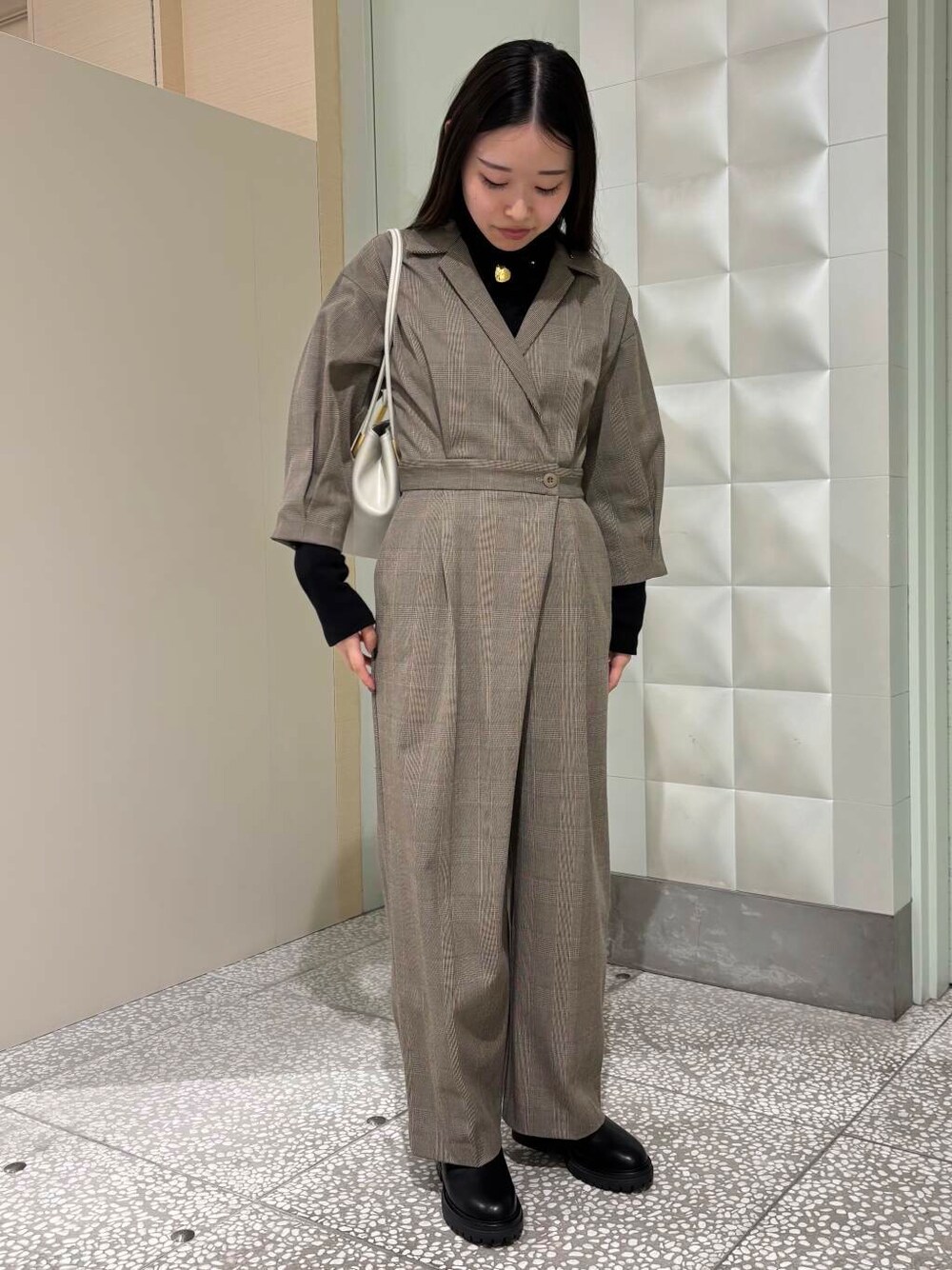*オールインワン 155cmで36サイズ着用です。フラットなシューズでも丈感に余裕があります。インナーに薄手のタートルニットなどを合わせるとスッキリとしたバランスで着用いただけます。 *ネックレス 長さを調整できるのでその日のコーディネートに合わせて取り入れていただけます。チョーカーっぽく短く付けるのがおすすめです。 ご覧いただきありがとうございます!