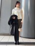 *アウター 身長155cmでの丈感になります。緩めのシルエットですが重くなりすぎず、後ろから見たシルエットも綺麗です。 *トップス 短すぎず長すぎない丈感が日常使いに活躍間違いなしです。広めのハイネックが上品なスタイリングに仕上げてくれます。 *パンツ スカートに見えるパンツなので、短いスカートに抵抗のある方でも履いていただけると思います。 スリットが入っているので軽い印象を与えてくれます。 ご覧いただきありがとうございます!