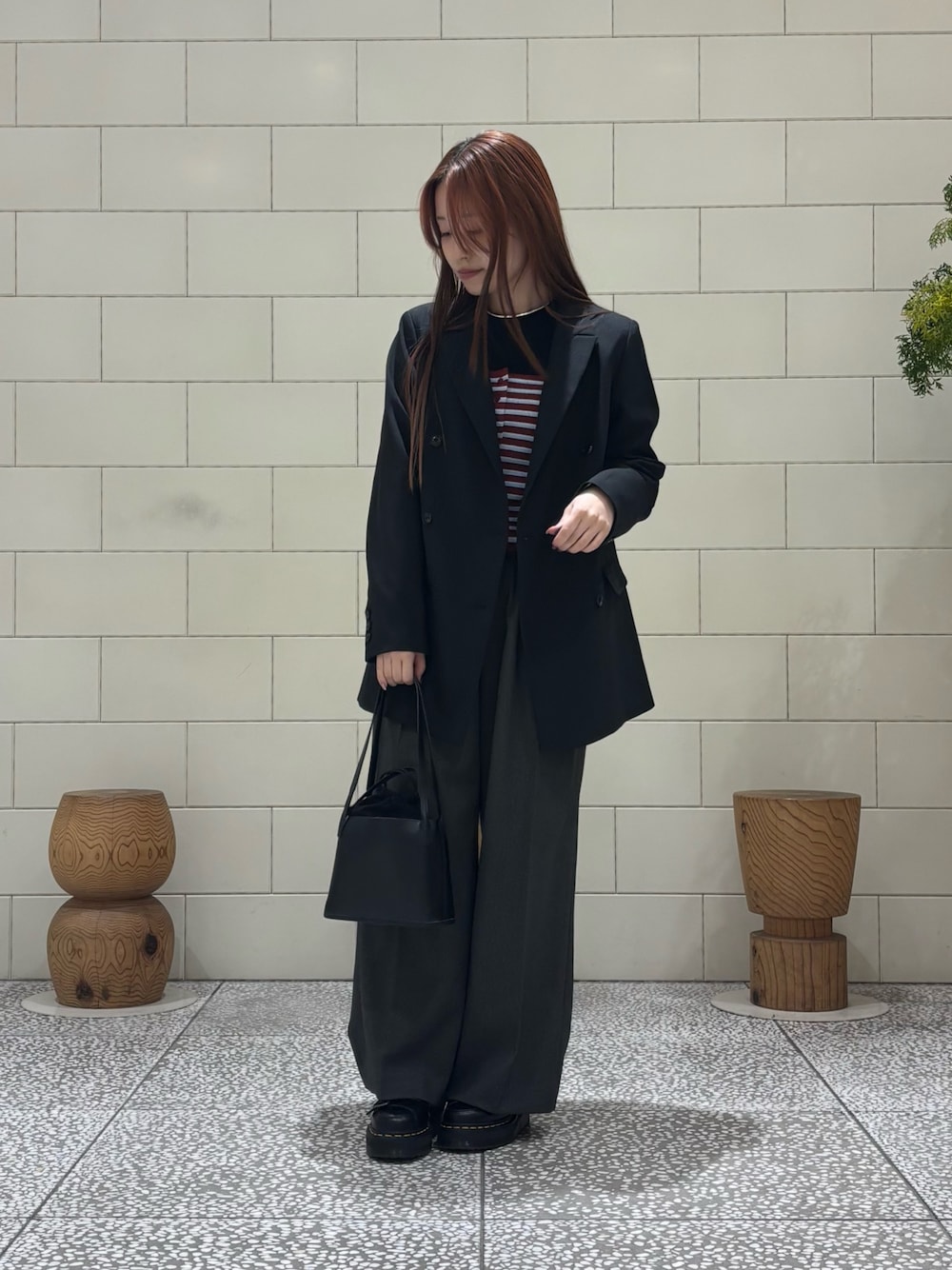 *トップス カラフルな配色が可愛いビスチェです。取り入れるだけでスタイリングの主役になります。 *アウター シンプルで飽きのこないダブルボタンのジャケットです。サイズ展開があるのでお好みの着こなし方に合わせて選んでいただけます。 *ボトムス タックとセンタープレスの入ったゆったりシルエットながらキレイめに決まるスラックスです。万能に活躍してくれます。 *バッグ 巾着が入っているようなデザインが特徴的でデイリーに取り入れやすいサイズ感のバックです。 *アクセサリー シンプルながら存在感のあるシルバーネックレスです。タイトなトップスと合わせると相性が良いです。 ご覧いただきありがとうございます!
