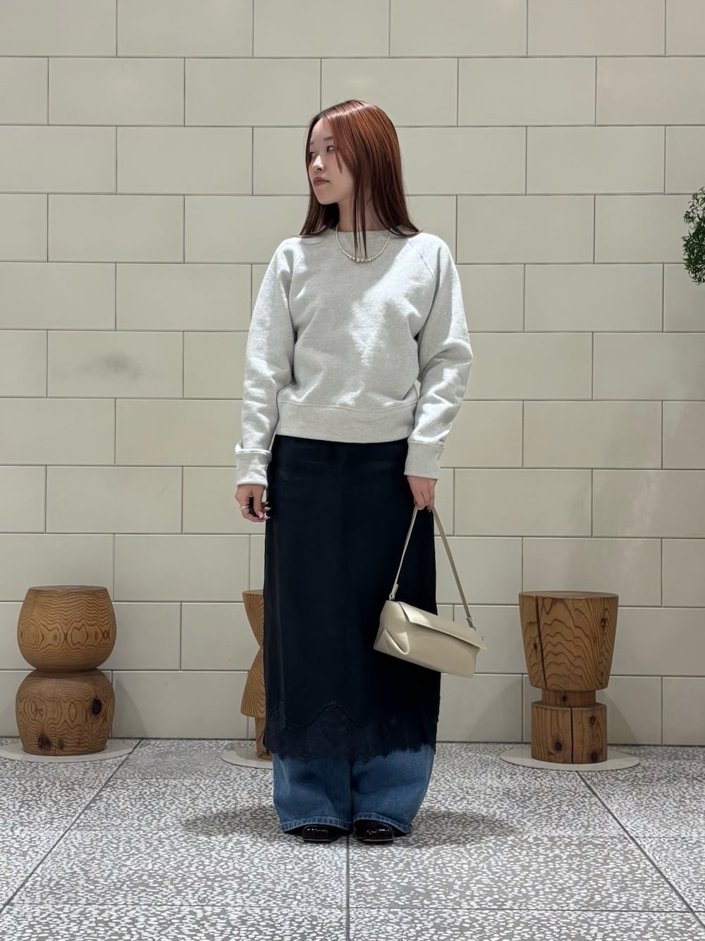 *トップス 大きめラメが施されたキラキラと存在感のある主役スウェットです。裏毛で今からでも使えるので長いシーズン活躍してくれます。 *ボトムス ペチコート付きのレーススカートです。セパレートになっているのでお好きなボトムスと合わせたレイヤードスタイルにもおすすめです。 *ボトムス 別注のLee101シリーズです。ゆったりワイドなシルエットが特徴で、抜け感のある履きこなしが可能です。4サイズ展開です。 *シューズ つま先がスクエアのデザイン性のあるパンプスです。エナメルの深い色味が上品でスタイリングのアクセントアイテムになります。 *バッグ コロンとした丸みのあるフォルムが可愛いバッグです。綺麗めなスタイリングにはもちろん、デニムとの相性も良いので幅広いシーンに◎【ROSSO/MIUUR/RWA5-GZM/GINZA/AZAHAR】 *アクセサリー 存在感のあるシルバーボールデザインのネックレスです。物足りないスタイリングに取り入れれば一気に華やかに仕上がります。 ご覧いただきありがとうございます!