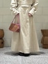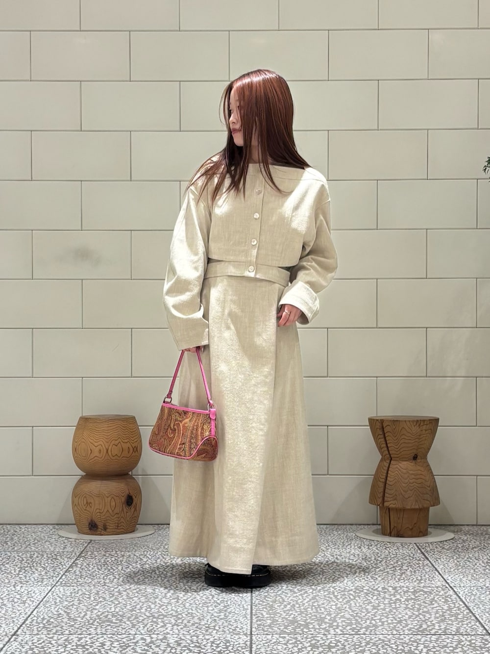 *トップス コンパクトなサイズ感のランダムリブのニットです。フロントフックのデザインがポイントです。【UR/ランダムリブニットカーディガン/BLACK】 *トップス 腰部分のベルトデザインがアレンジ感があります。ボートネックデザインでしっかりとした生地なので肩幅にあわせてサイズを選んでいただくと綺麗な着こなしができます。 *ボトムス セットアップ対応のAラインシルエットが綺麗なスカートです。トップスと同様のナチュラルで凹凸のある生地感が特徴的です。丈感は155cm/36サイズでくるぶし下くらいです。 *バッグ 柄×ピンクの縁取りが華やかなハンドバッグです。刺繍が上品で、存在感のあるアイテムです。 ご覧いただきありがとうございます!