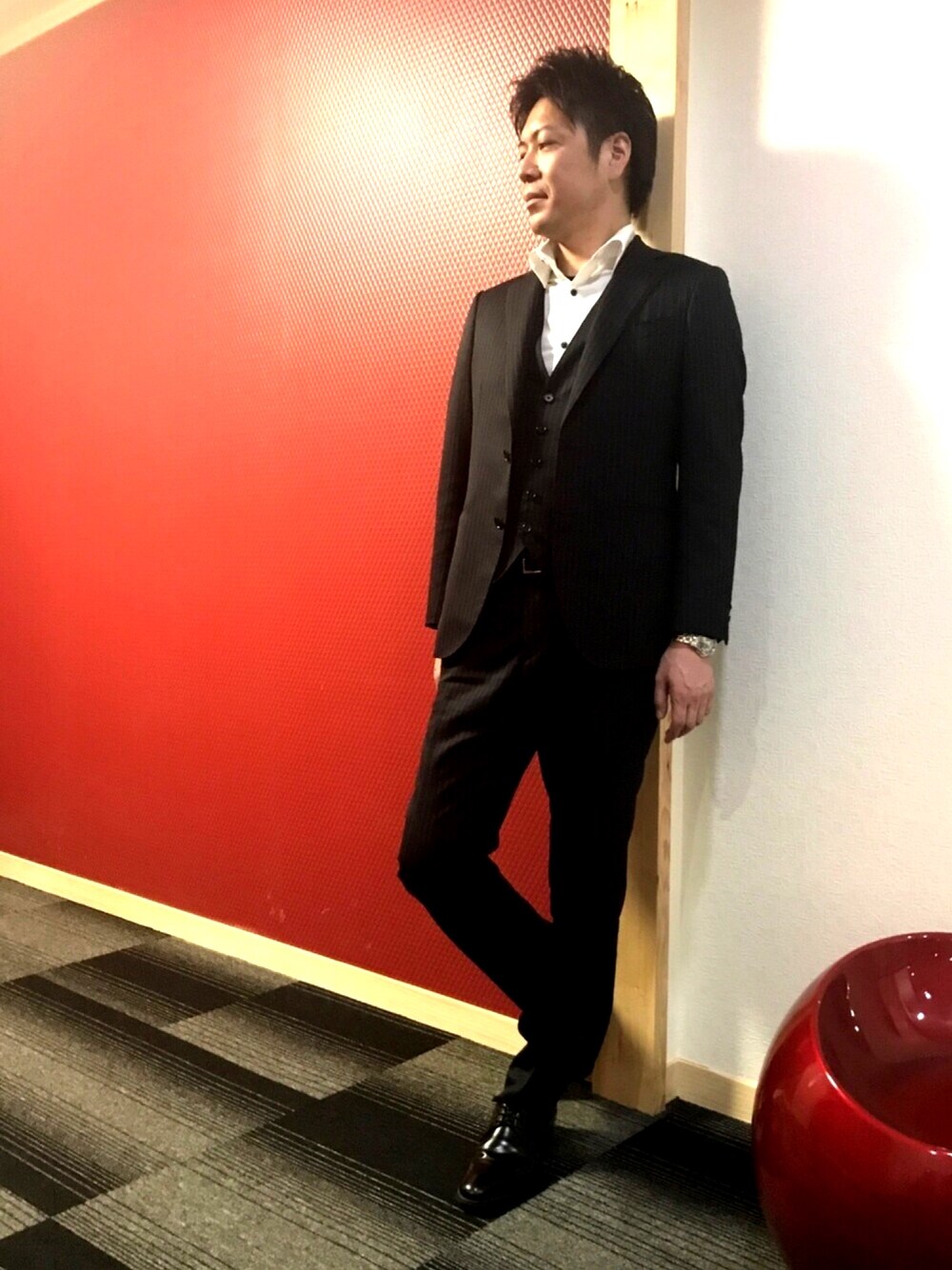 オールブラックの統一感。 アクセントには王道のシルバーのウォッチがマスト。