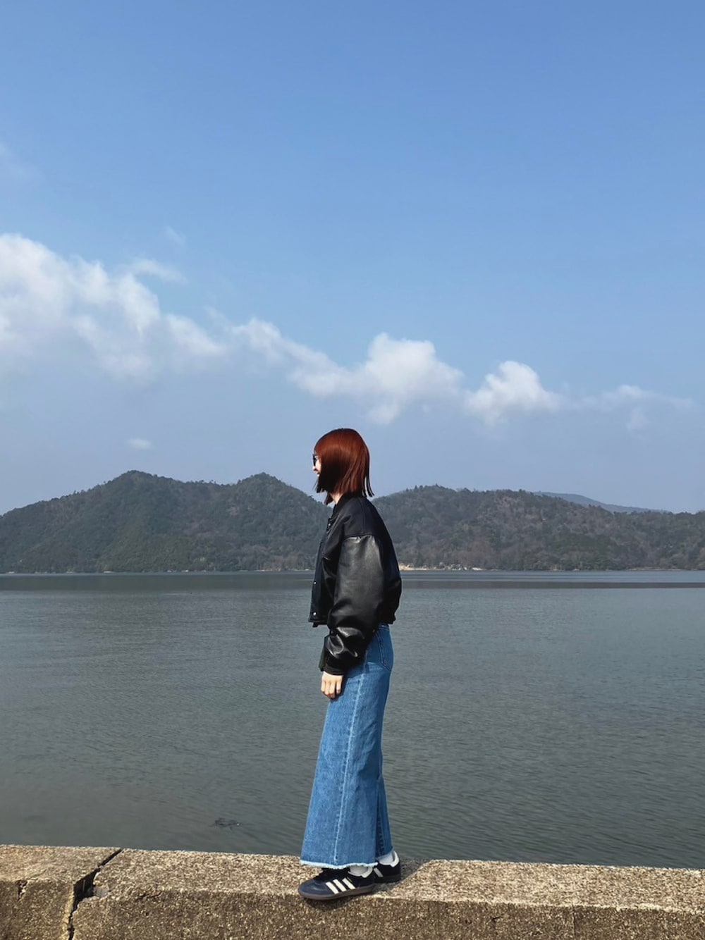 sunflower7のブルゾン「THROW F/LEATHER SEAM DESIGN CROP BZ フェイクレザー シームデザイン クロップド丈 ブルゾン ショート丈 MA1 フライトジャケット」を使ったコーディネート