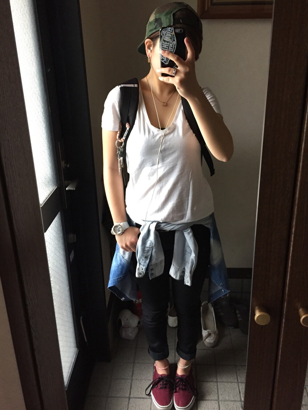 town style😊🙌🏽 雨も止んだし、こないだ古着屋さんで買うたVANS履いて買い物に行ってきまーす( ´ ▽ ` )ノ