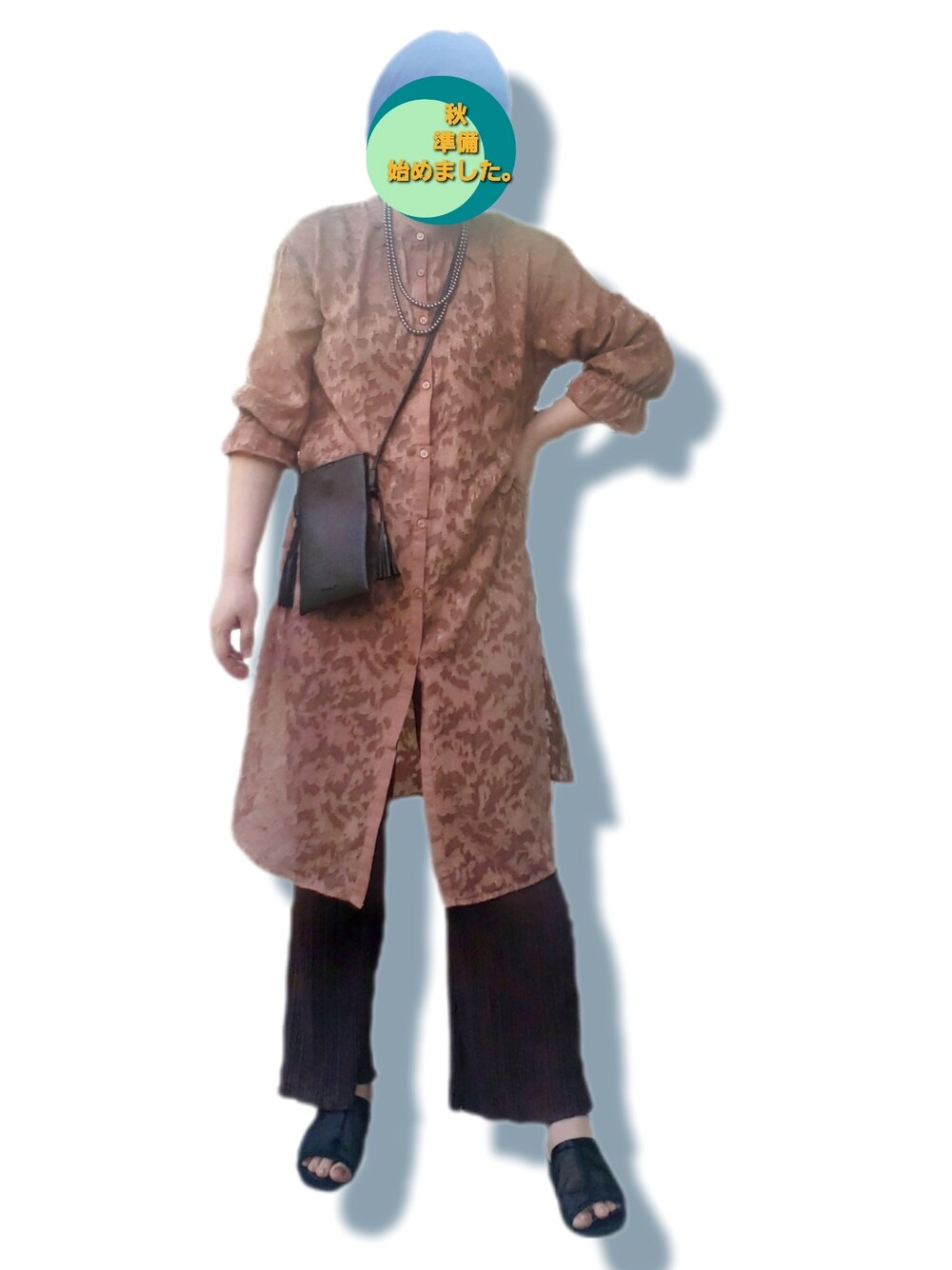 今日は寝てよう日なので、この間しまむらで 秋準備の為に購入したシャツとパンツの記録用( ˘ω˘ )スースー… シアージャガードシャツ→税込1,969円 腕の部分が七分袖でゴムが入ってる。 ジャガードシャツの長袖ではなく、七分袖が欲しかったので購入。できればゴム無しでストンとしててくれれば理想的だったな🤔💭 あと、裾のところが両側スリット入ってて動くとチャイナ服みたいで可愛い🐼 ボトムスは プリーツフレアパンツ→税込1,089円 カラバリが5色位あって、フレアじゃないやつもあった。楽チンパンツ٩( ᐖ )۶٩( ᐛ )۶ バックは宝島社ムックの地曳いく子さんのバック。バック2つのセットだったやつ。元値2,750円をSALEで1,250円で購入。 ムックの進化がヤバすぎる...。 こちらのバックは携帯、小さめ財布位しか入らないけど、近所に行く時の一軍選手。 ガッツリ秋カラーだけど足元はまだ夏場仕様のトゥオープンのシアーサンダルで。 暦的には 秋だけど、まだちょっと暑い日用の楽チンコーデ用( ᐛ👐)