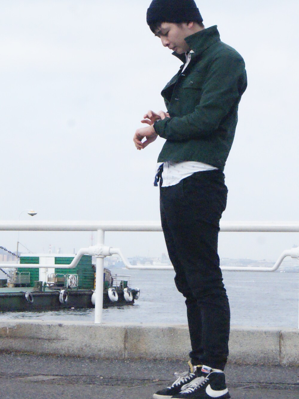 昨日は暖かかったので,近所の山下公園で寝転んでおりました。 撮ってもらったので,せっかくなので上げときます。山下公園shotはわし📷 だいぶ今日は春こえた暑さだったので,薄手のカーキ(グリーン)ジャケットに黒ジョガーパンツ,ナイキでスポーティー仕上げでした。