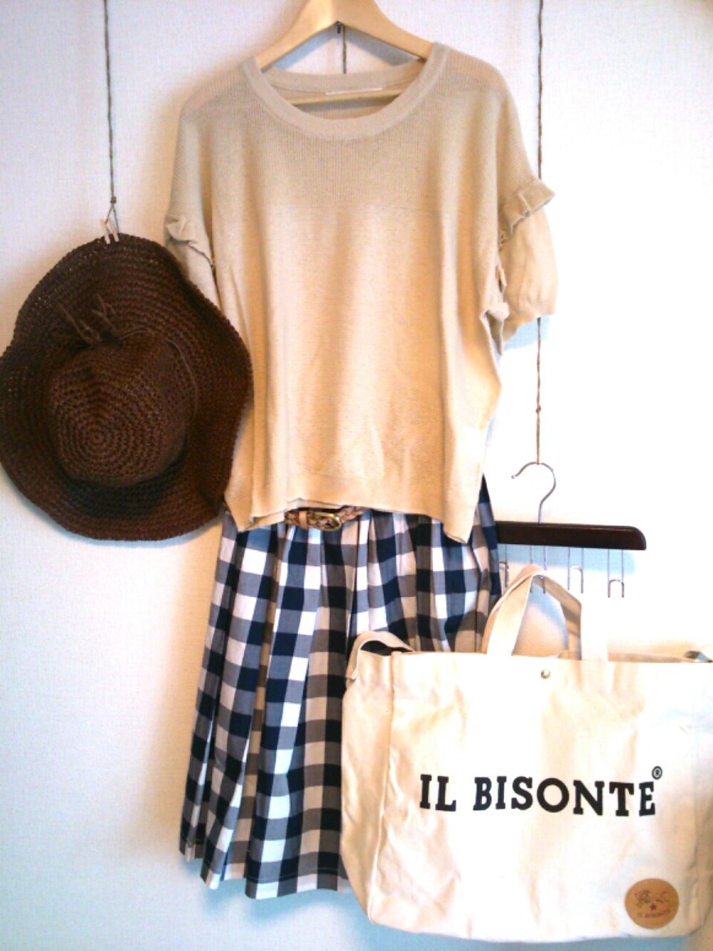 ニットトップス/ehka sopo ベルト/ehka sopo 帽子/ノーブランド