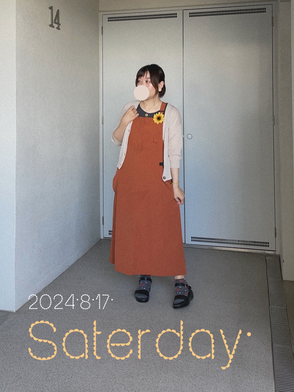 ワークマンプラスのガーデニングワンピース!店頭で見付けて一目惚れしたもの 目立つ色なので合わせるアイテム選ぶけど(黒合わせがち)撥水なので子供と水あそびする時に便利 メンダコ柄の靴下はCanDo このワンピースにピッタリな色味でお気に入り