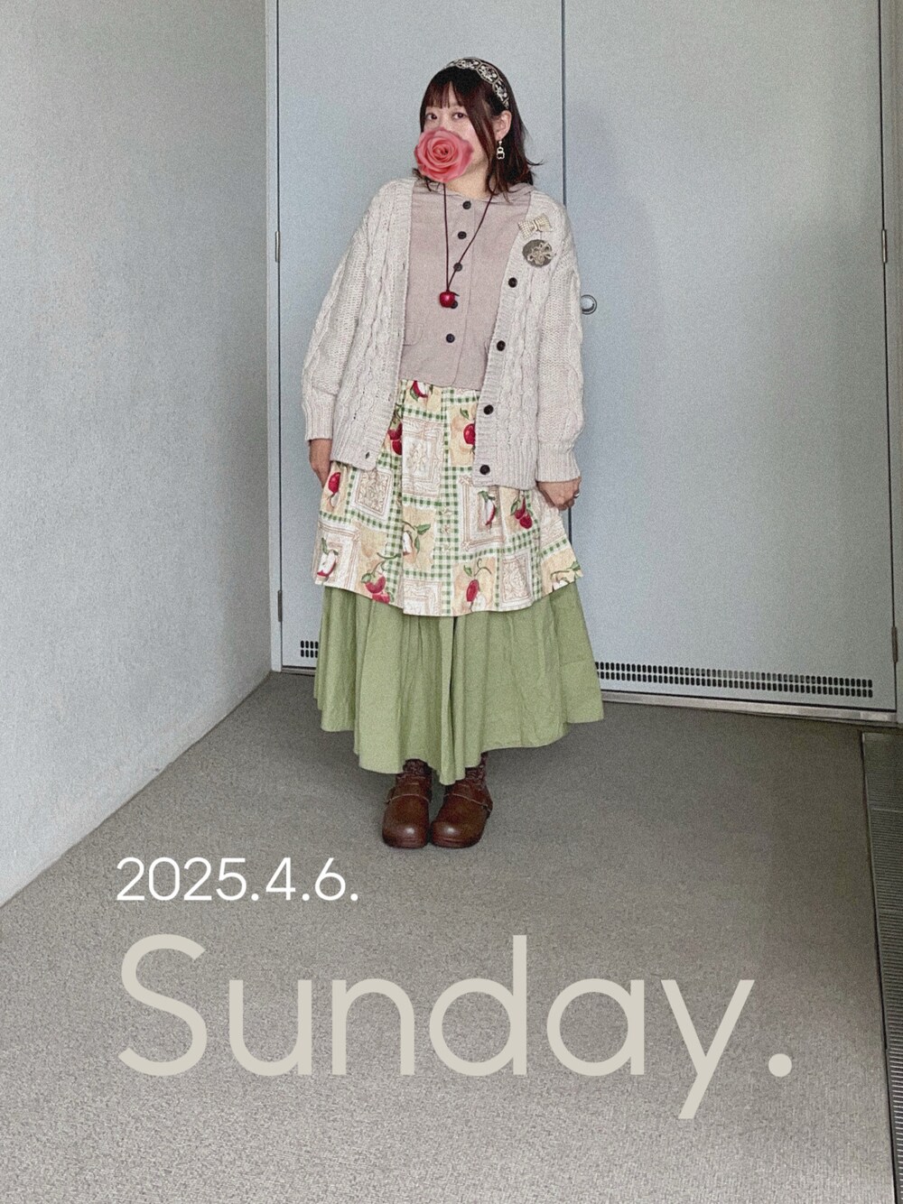 曇りだけどお花見行ってきた 作ってたコーデセットをひとつ消費 厚手のニットなので天気の悪い日に…と 思ってたのに、暖かくなってきて なかなか着れなかったコーデ インド刺繍のカチューシャは 黒字に金の糸の刺繍が映えて素敵で、 白めのリボンブローチ、 ベレー帽みたいなフェルト生地が可愛い 丸ベースのブローチ どれもイベントで買ったもの 特にブローチはコーデ作った時に 早々にニットに付けちゃったから やっと使えて嬉しい くまのモチーフピアスは 両耳揃ってて300円くらいだった 今日はもう片方はスリコのくま🧸 お気に入りの古着のエプロンも 緑のスカートと合ってて お気に入り😍 髪型は迷って結局 適当に巻いてカチューシャしただけなので 気に入ってないw