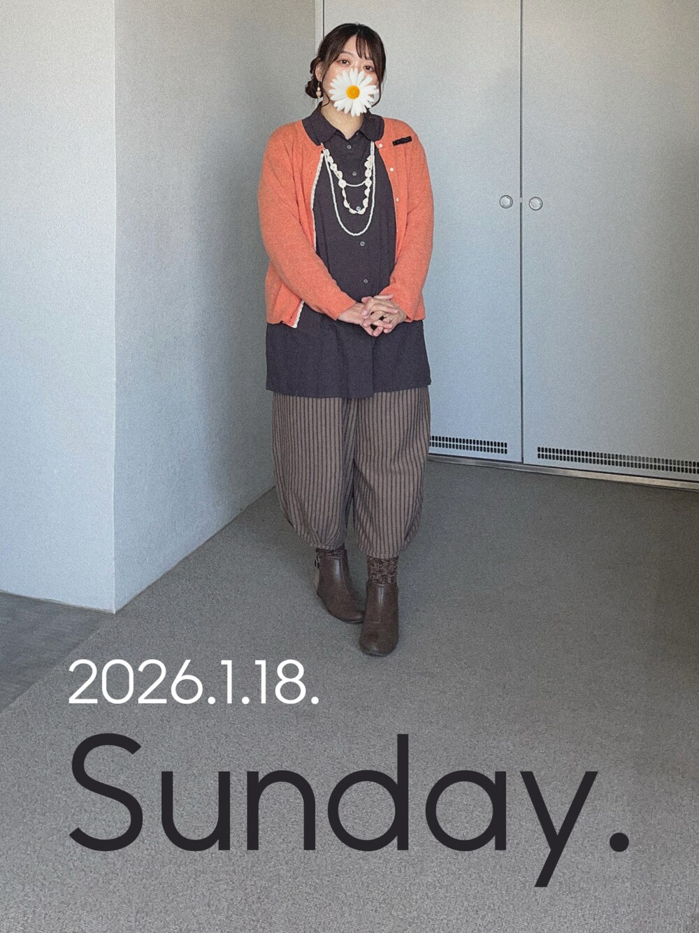 色味ほとんどハロウィンだけど 割と気に入ってる! オレンジのカーディガンが主役のコーデ🍊 かなり目を引く色味だから お気に入りだけどいつも合わせが単調になりがちで難しい だいたい白か黒を無難に合わせてるから 次はそれ以外の色を合わせてみたいな パレッタの色が映えて良かったので これを参考に次回色選びしてみたい