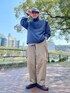 グレー系のその他アウター、ベージュ系のチノパンツを着用したメンズの春コーディネートの2枚目の写真