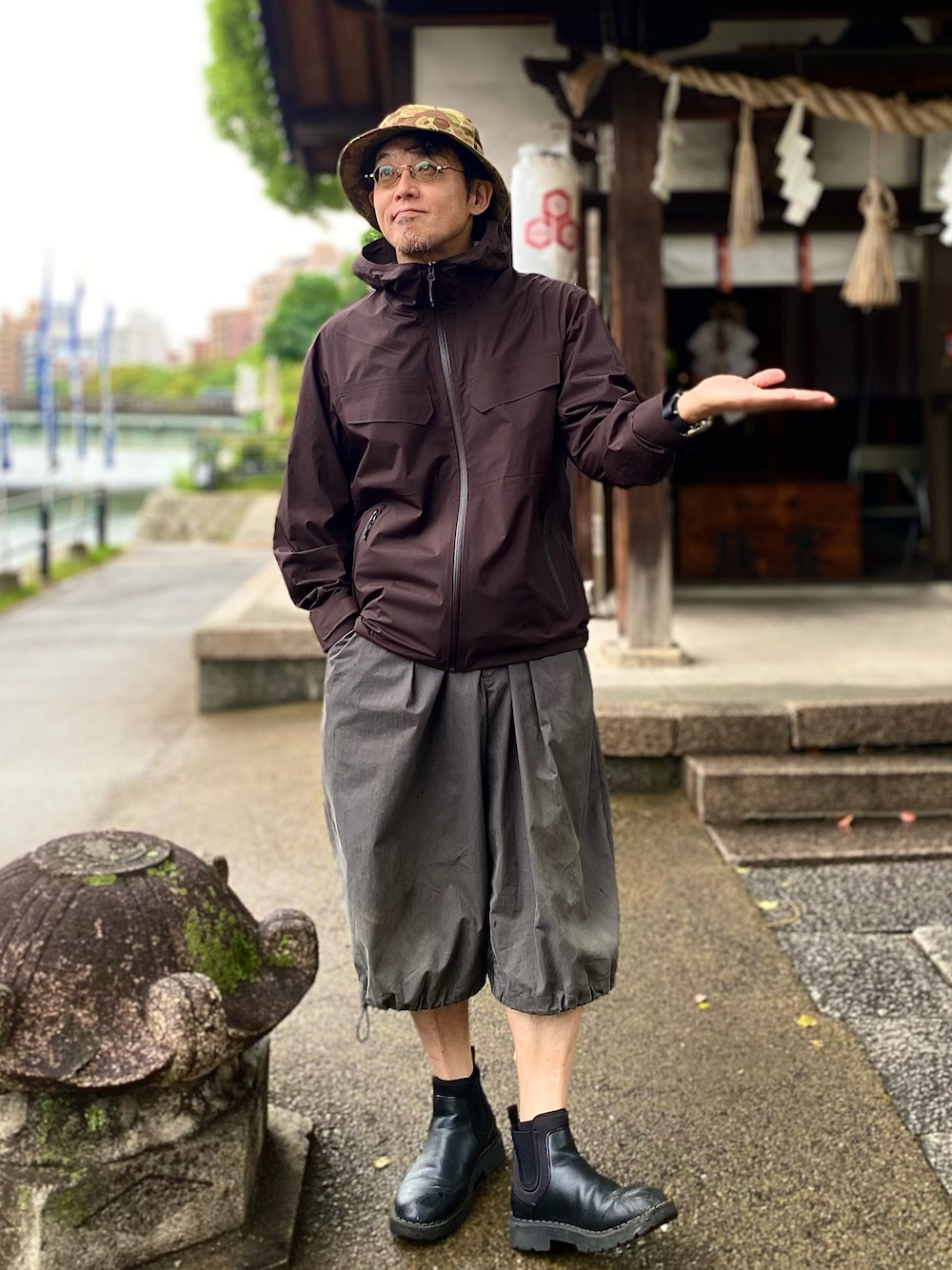 25AWユニクロCのブロックテックパーカーがバカにできないかっこよさ♪ 防水・透湿機能のブロックテックが薄くてマットで高級感抜群。 裾のドローコードで少し絞って、袖口のベルクロも締めればむぢゃくちゃカッコ良いシルエットになります。 サイズM着用。 teenagerのバギーショーツ履いて、 M-42ダックハンターカモ柄ハットけぶって、 ユニクロCレインブーツはいた、、 小雨は手ぶらでOK!