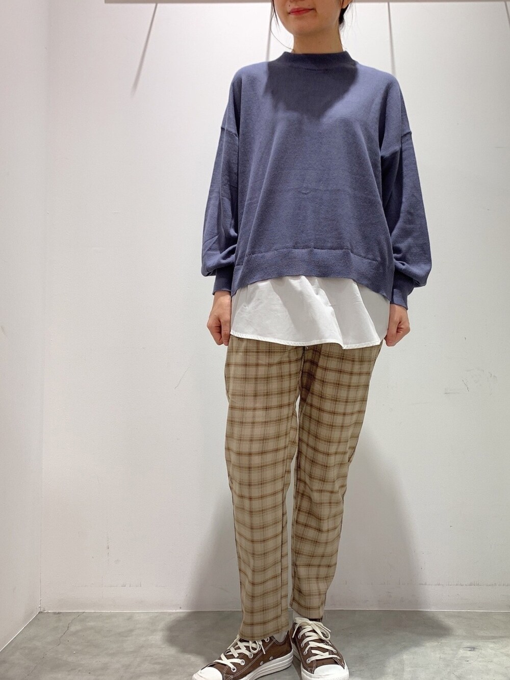 1枚でレイヤードしているようにみえるトップスです🔎 今回はブルーをチョイスしました〜🌵 カラーパンツと合わせるとまた違う印象になります😌