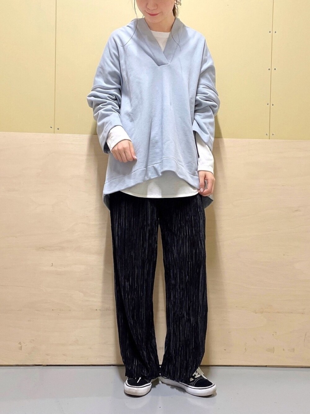 ご覧いただきありがとうございます♪ 【WEB限定アイテム】 スキッパーデザインのスウェット💙 サックスはホワイトとブラックと合わせるのが自分の中では定番です✔️