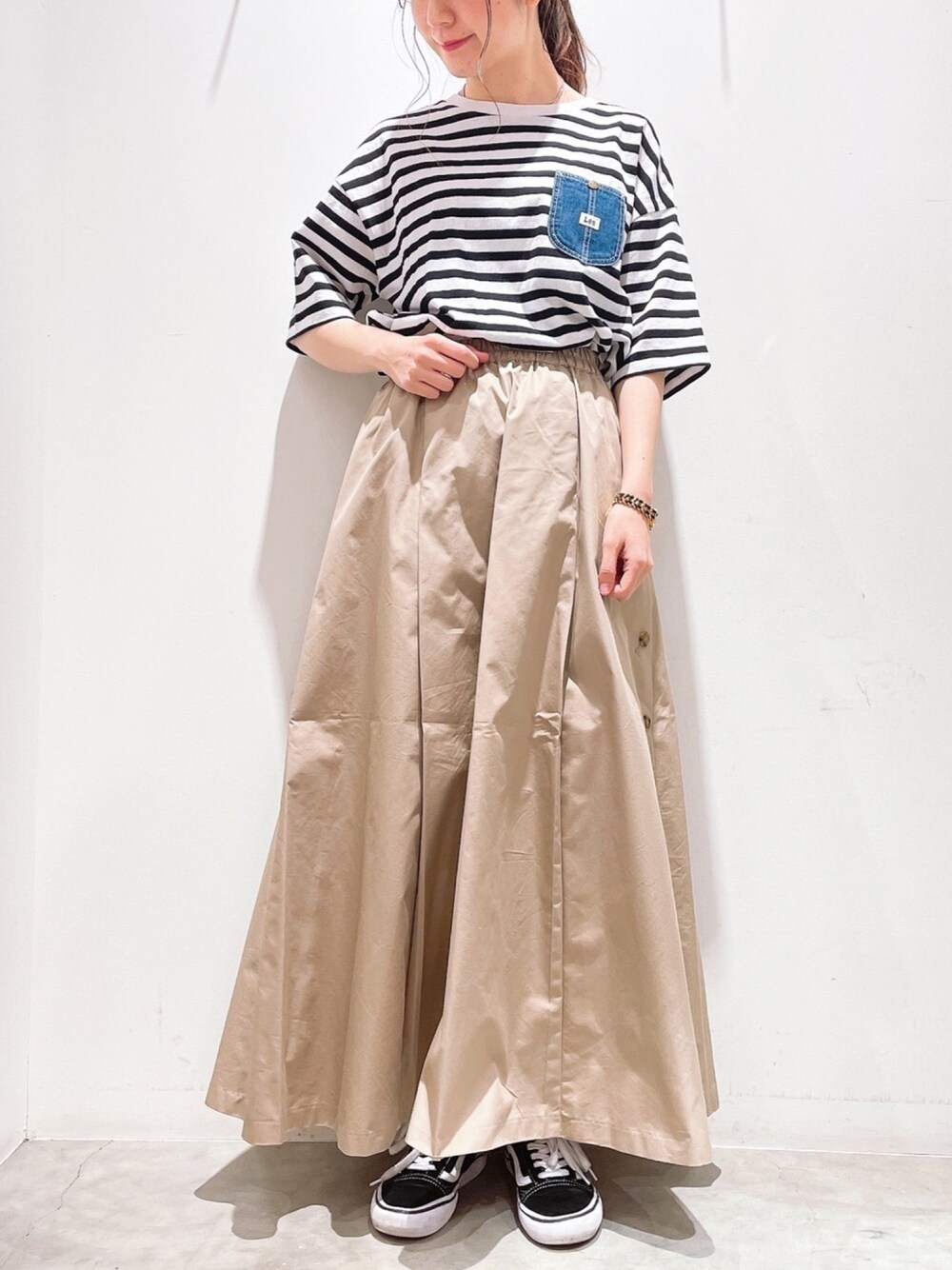 ボーダーにベージュのスカート合わせ🔆