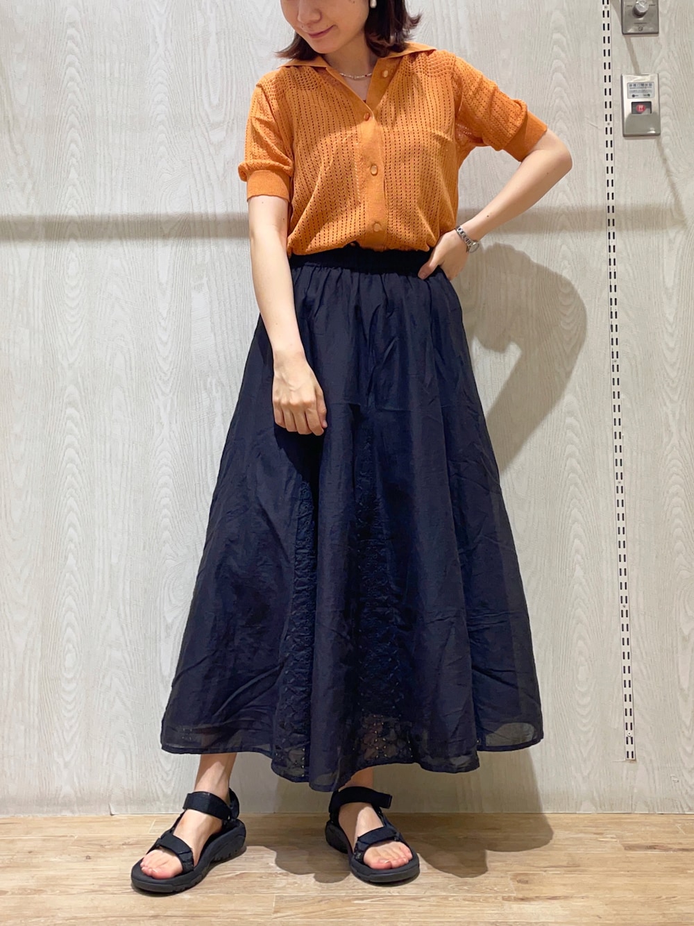 ゆなすんのスカート「コットンレース切替フレアスカート」を使ったコーディネート