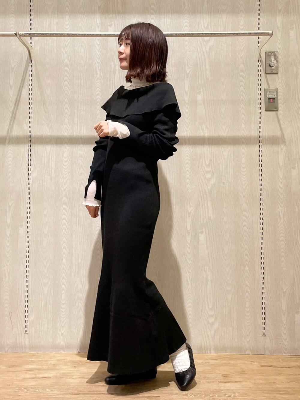 ゆなすんのワンピース「2WAYビッグカラーニットワンピース」を使ったコーディネート