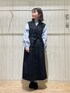 トップス 普段着用サイズ Mサイズ 今回着用サイズ Fサイズ スタンドフリルのブラウスです。肩まわりにはゆとりがあり、動くとつっぱるような感覚はなく、ストレスなく着れました! ジレンチ 普段着用サイズ Mサイズ 今回着用サイズ Fサイズ 今回はワンピースとして着用しました! ブラウスとあわせるときれいめな印象になります! ウエストのリボンを前側で結ぶと、しっかりAラインシルエットに見せてくれます! 後ろからみたシルエットはもたつくことなく、すっきりした印象でした!
