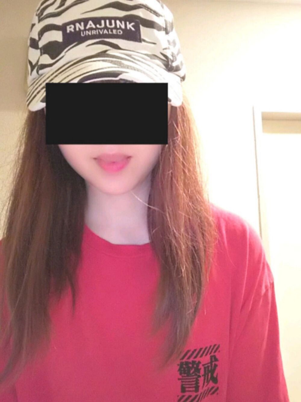 クーポン使ってGETしたゼブラ柄のジェットキャップ🦓 Tシャツはずっと前のエヴァコラボ🤖 髪の毛ボサボサ😭